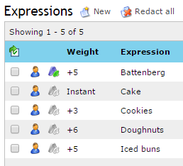 1. Click Policy > Lexical Expressions and select an Expression List on the Lexical Expression Lists tab.