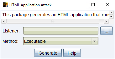 An HTML Application is a Windows program written In HTML and an Internet Explorer supported scripting language. This package generates an HTML Application that runs a Cobalt Strike listener.