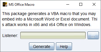 Choose a listener and press Generate to create the step-by-step instructions to embed your macro into a Microsoft Word or Excel document.