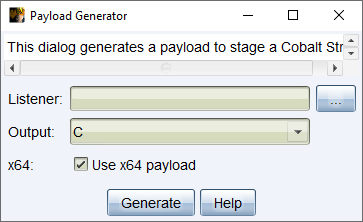 Listener - Press the ... button to select a Cobalt Strike listener you would like to output a payload for.