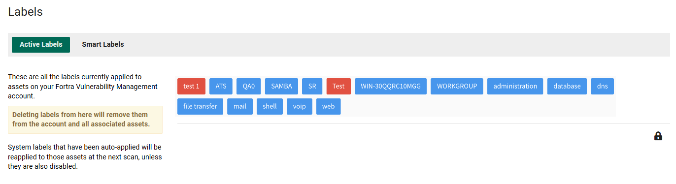 Active Labels are those that have been applied to web apps, pages and vulnerabilities. This includes labels that have been applied manually by a user or applied automatically as a Smart Label.