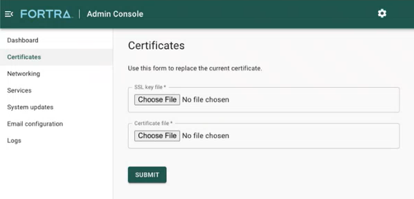 IMPORTANT: Restart the Fortra Admin Console appliance via the VMware console after uploading an SSL certificate.