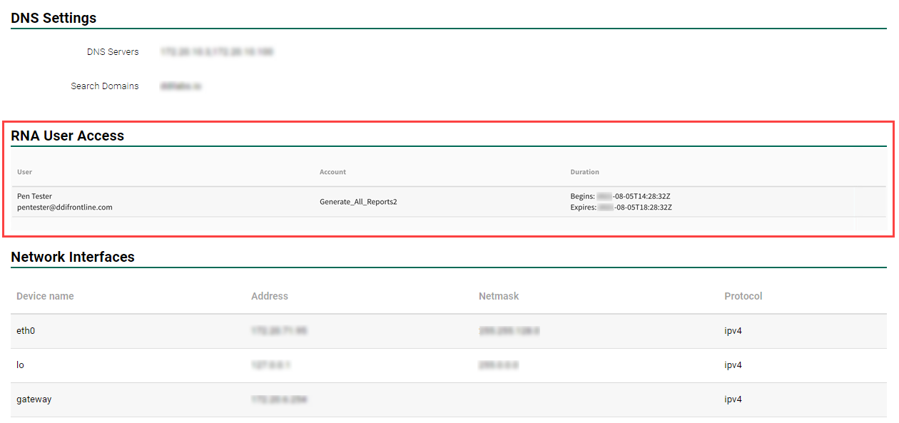 During a support session or Penetration Test, organizations may choose to grant temporary access to internal RNA's for testing purposes. As a user you can see what party or parties currently have access to your RNA. From the
