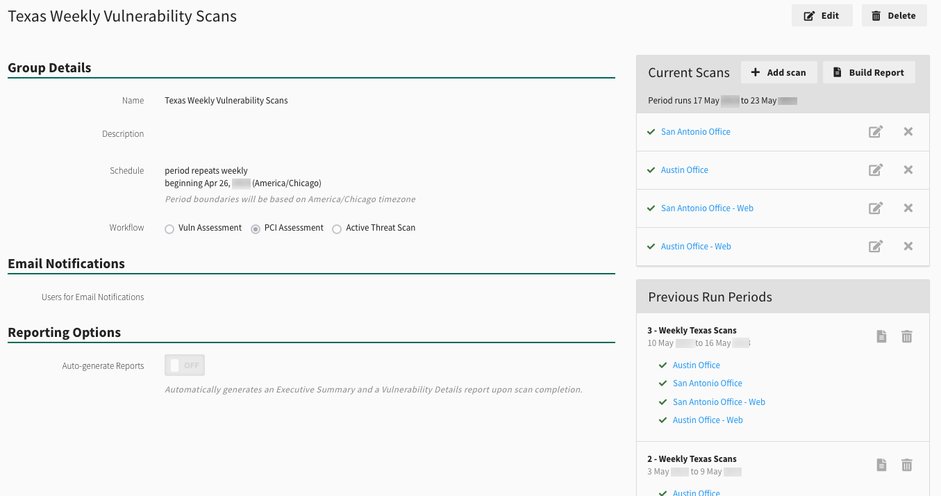 Scan Group Detail Page