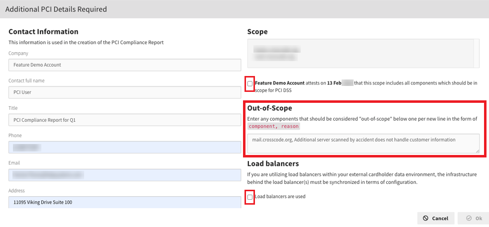 IMPORTANT: You must fill out the PCI Scope Details section to generate compliance reports such as the PCI ASV Attestation of Compliance. -