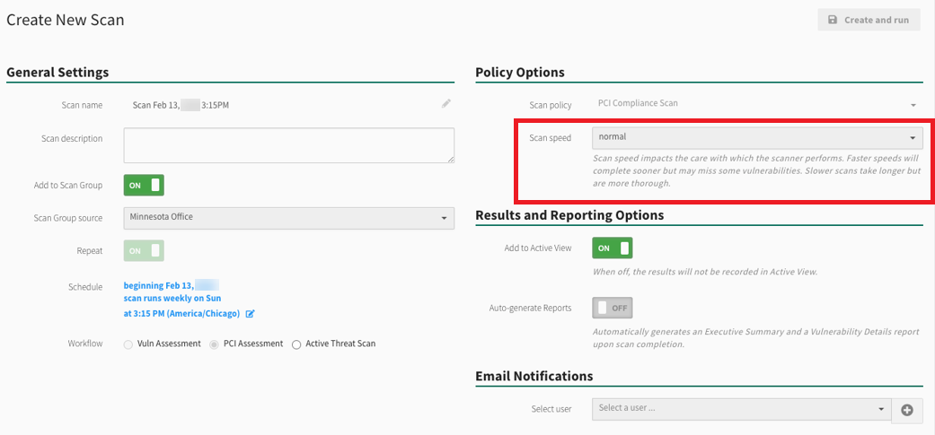 Scan Speed is set to normal by default. This is approximately 450 packets per second and maximum of 6 concurrent CVCs per host.
