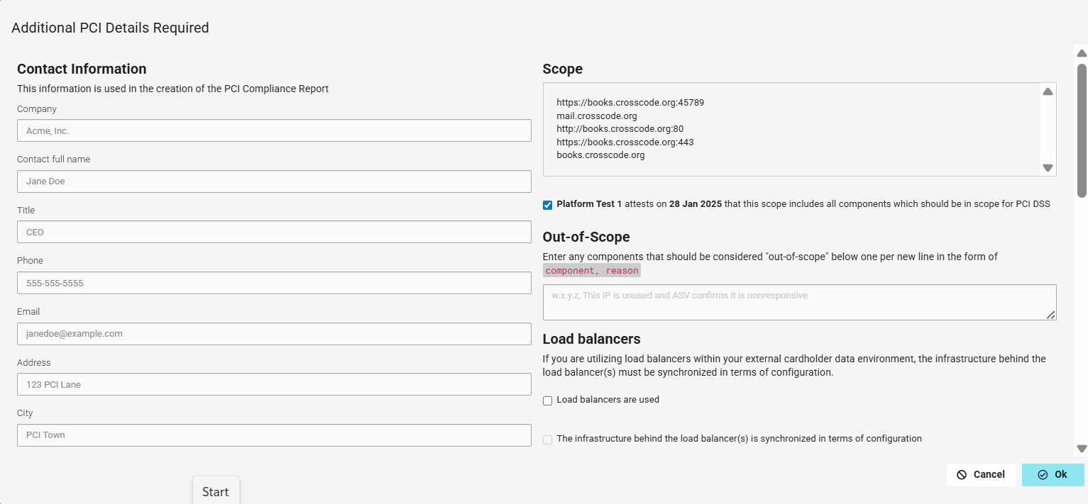A box will display for Additional PCI Details Required. If the PCI Contact Details were filled out in the scan group, this information will populate automatically.