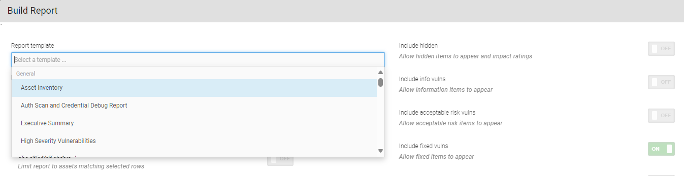 On the scan results page, select Build Report. See Reports for more information.