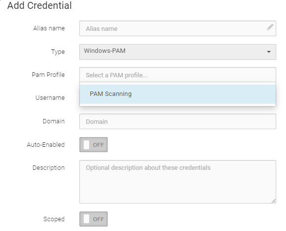 Once you have configured and saved your PAM profile, create scan credentials with your PAM profile as-per-usual through Fortra VM’s existing Credential Manager by selecting Windows-PAM or SSH Password-PAM as the credential type.