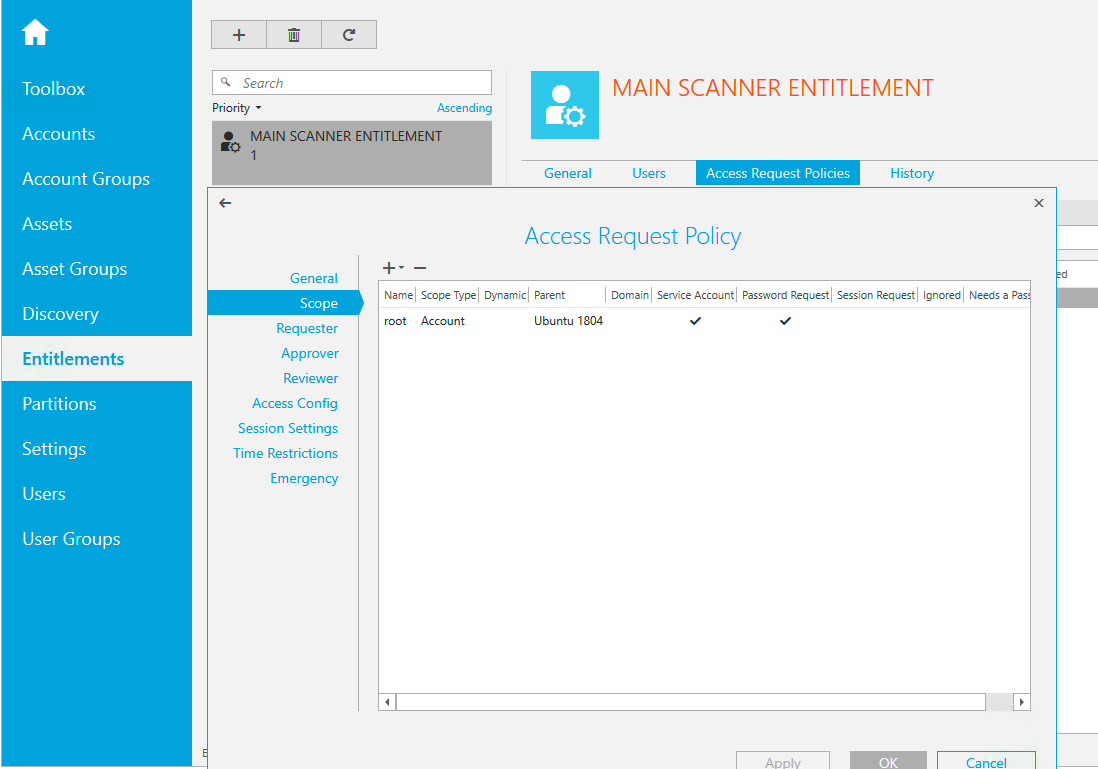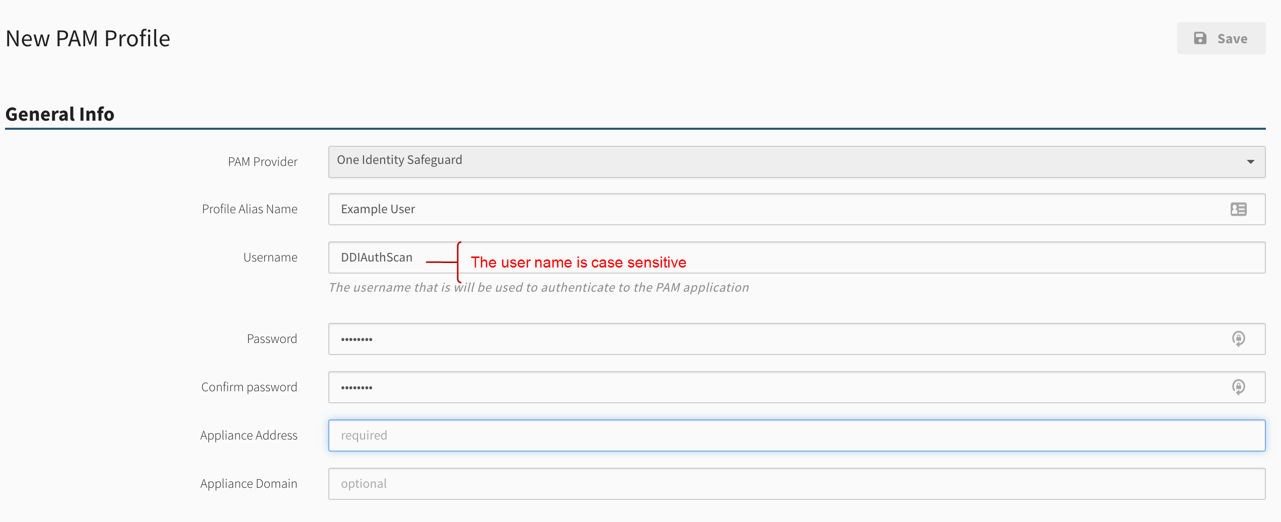 NOTE: The username for the credential (not the Safeguard PAM user) is case sensitive. This is unlike our normal auth scan in which the username is not case sensitive. For example, LAB\DDIAUTHSCAN works in auth scan , but fails with the PAM scan. LAB\DDIAuthScan works in auth scan and also in PAM scan. DDIAuthScan is the username. -