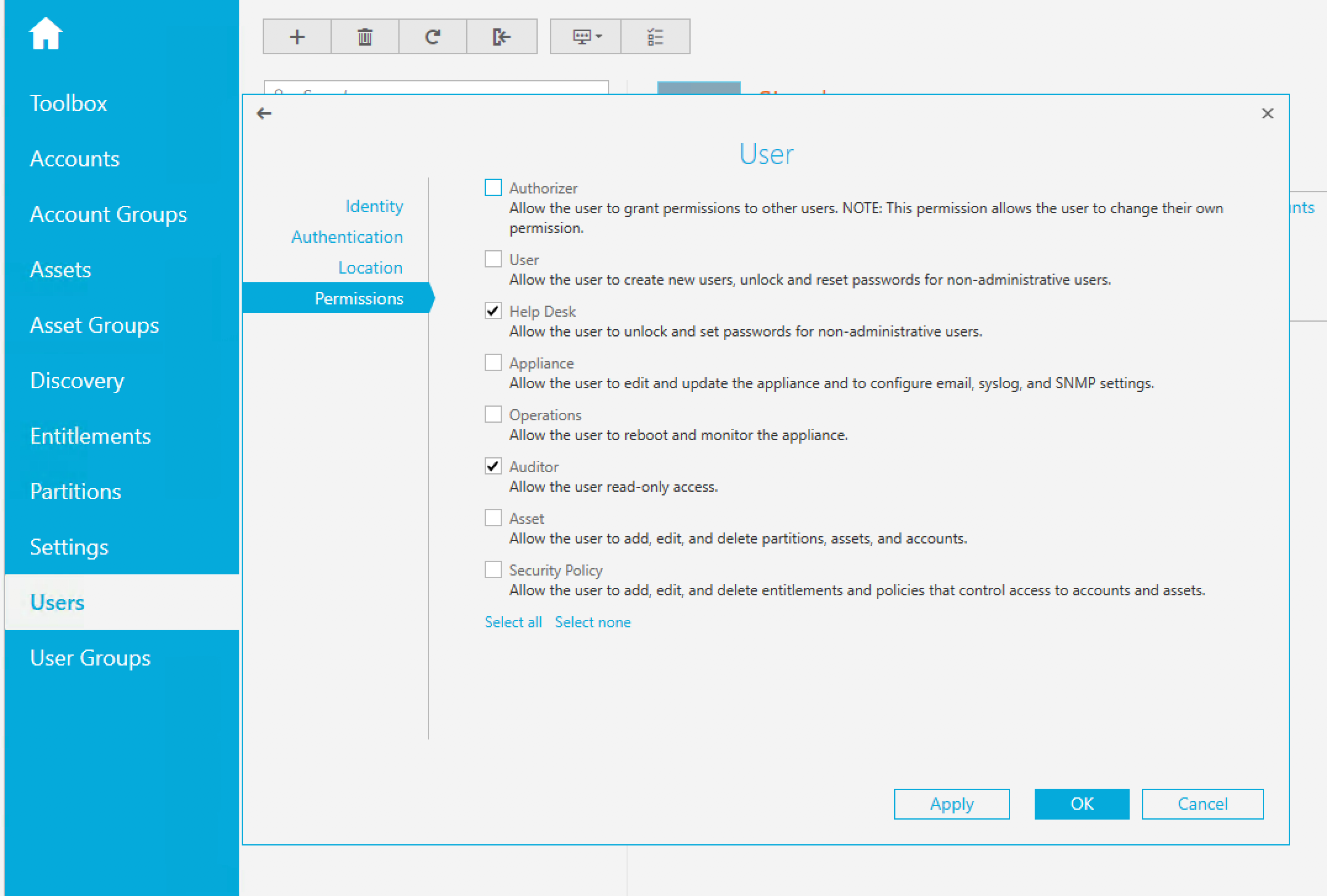 Users - The Safeguard User who will use the above described Entitlement must have these minimum permissions as well.