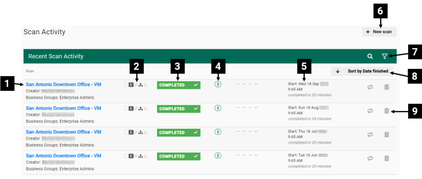 | 8 | Sort scans by date finished, name, workflow, and status, among other options. |
