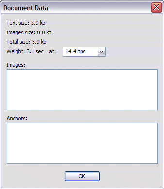 The Weight area displays the approximate number of seconds your page will take to load based on the size of the file and the modem speed of your viewers. Click the down arrow on the modem speed box to see how soon the page displays at various speeds.