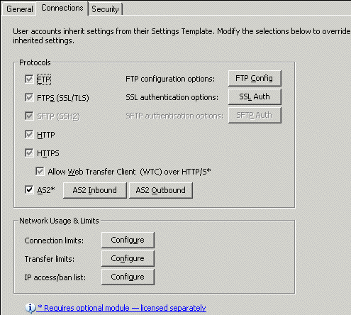 EFT Server Enterprise supports authentication using SSL certificates for FTPS, and HTTPS, and AS2 connections, rather than password-based login. This is similar to SFTP authentication in which a particular SFTP key is associated with a user account; when the user logs in and provides the key, as long as the keys match, they are allowed to proceed. Unlike SFTP, SSL offers the option to authenticate using both password and certificate rather one or the other.
