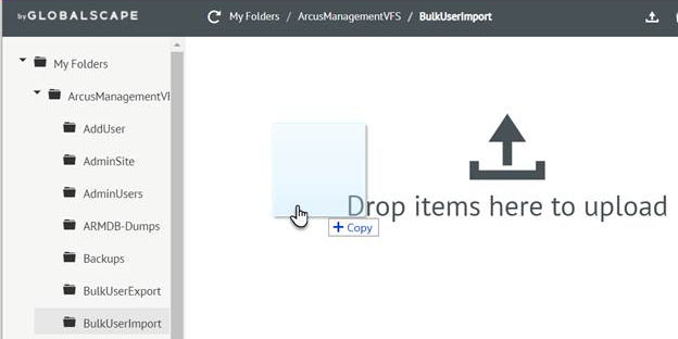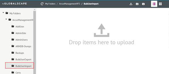 Open the /ArcusManagmentVFS/BulkUserImport folder: