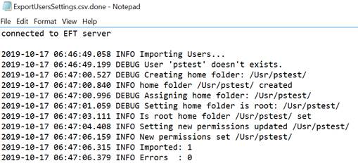 After the <filename>.CSV file is processed, the original CSV file will be deleted and then a <Filename>.done file, if the process was successful, or <Filename>.error file, if errors were found during the import process, will be created.