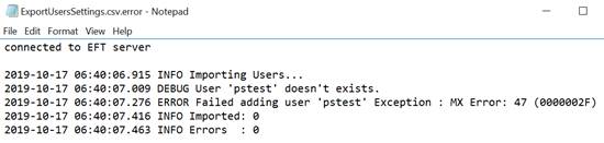 Open the <filename>.done file or <filename>.error file to view the full log of the import process.