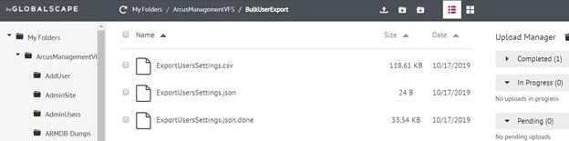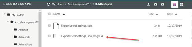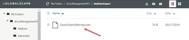 Navigate to the /ArcusManagmentVFS/BulkUserExport folder