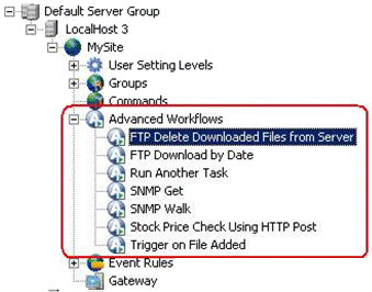 Similar to EFT's Commands, EFT's Advanced Workflows add additional automation capabilities, allowing you to add scripting and variables to workflows, then add these reusable workflows to Event Rules. A workflow is a series of steps that can perform file transfers, batch data processing, application testing, and so on, set to run automatically when started by some event. A workflow can be composed of a single step or hundreds of steps.