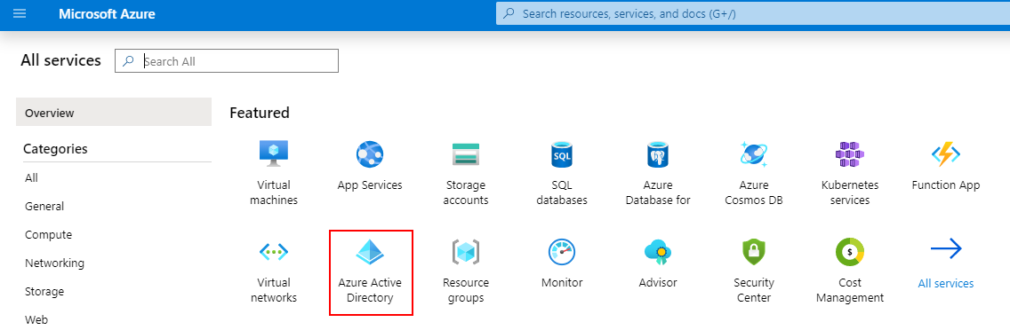Click Azure Active Directory. (If your organization already has an Azure Active Directory account, it will appear here, and you will need administration access to register your application (EFT).)