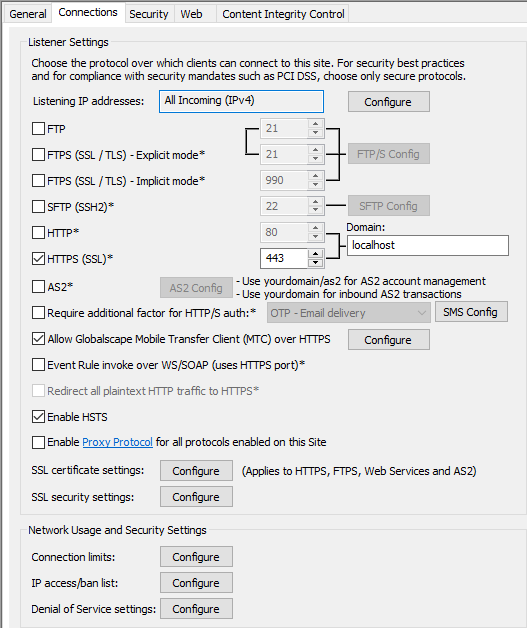 In the Internal host name box, specify the URL through which internal users should log in to EFT.