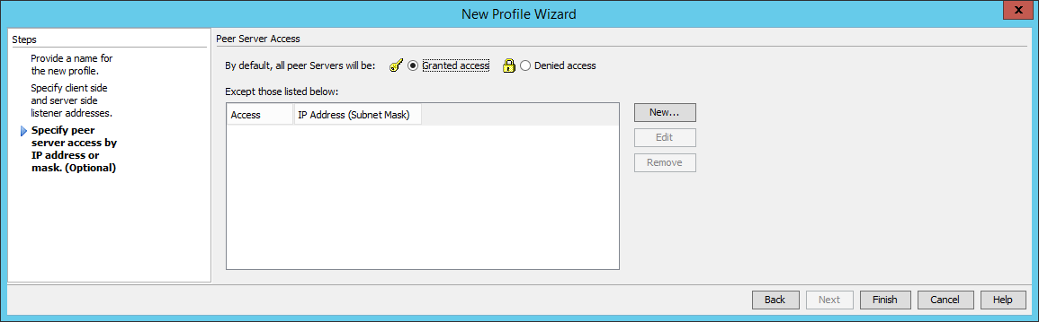 If most IP addresses are allowed access, click Granted access, then add the exceptions.
