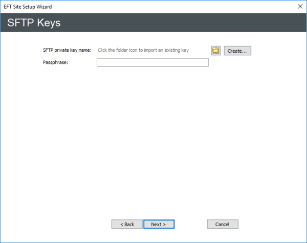 25. (If you are using SFTP) Click SFTP keys to configure an SFTP key pair. The SFTP Keys wizard appears.