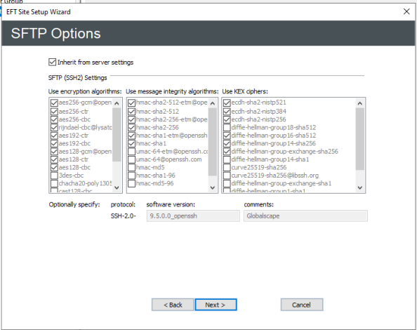27. You are returned to the Site Setup wizard Protocols page. Click SFTP Security. The SFTP Options page appears.