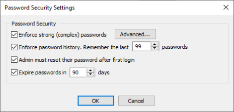 4. Click an EFT-managed administrator account, then click Password Policy. The Password Security Settings dialog box appears.