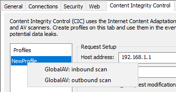Right-click the profile, then click GlobalAV: inbound scan or GlobalAV: outbound scan.