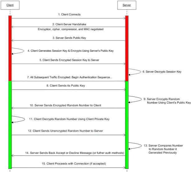 Below is an illustration of a basic SFTP transport and SFTP Public Key authentication sequence.