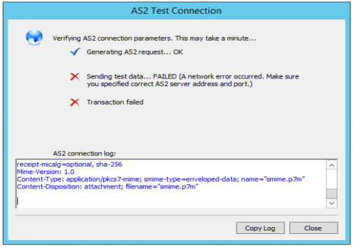 (Requires AS2 and HTTP/S module) You can validate the AS2 partner configuration details by sending a test file to the remote partner. This provides immediate feedback as to whether an outbound connection was configured properly.