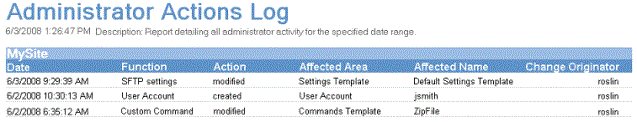 (Requires ARM) Administrators often need to know when and what changes were made to EFT and who made them. The administrator Actions Log report provides information about administrator changes. When ARM expires, administrator changes are no longer audited.