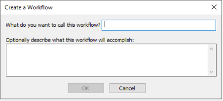 In the What do you want to call this workflow box, specify a name for the Workflow, then click OK.
