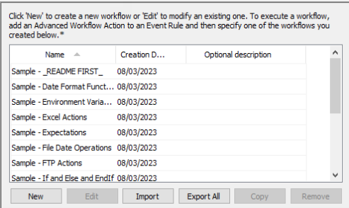 For details of how to create or edit workflows, refer to Creating Workflows for Use in an Event Rule.