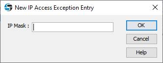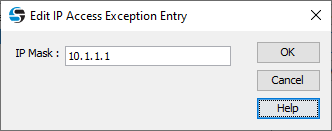 Use the New IP Access Exception Entry dialog box and the Edit IP Access Exception Entry dialog box to provide a specific IP address (for example, 192.168.43.201) or an IP address mask using wildcards (for example, 192.168.43.*).
