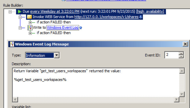 You can use this variable within the same Event Rule call, such as to write to the Windows Event Log: