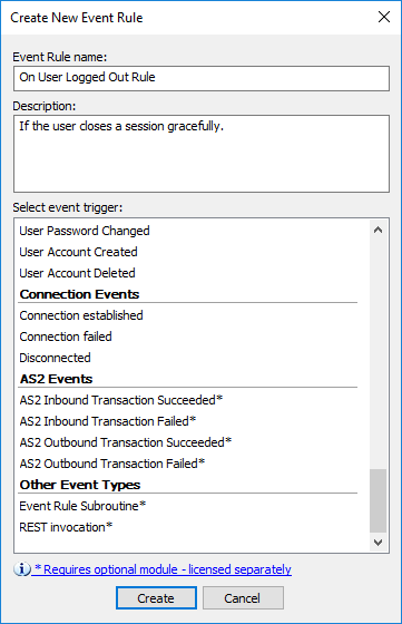 Not all variables are available with every Event trigger. For example, it does not make sense to use the %EVENT.REASON% variable with a File Downloaded Event, but it does make sense with the Upload Failed Event, because EFT can determine the reason for the failure.