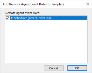 Before creating your first Remote Agent Template, you should define a Remote Agent Event Rule. If you haven't created any Remote Agent Event Rules, you can still create the template, but then you'll have to edit the template after you create the Event Rule to add the Event Rule to the template.