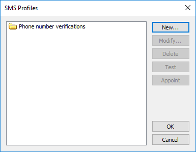 Click New to create a new SMS profile (as a generic SMS or with a custom verification code).