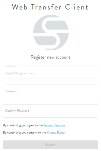 1. In the email invitation to join a Workspace (a shared folder), click View Folder (or right-click and then click Copy link address). The default browser opens with the WTC Registration page displayed.