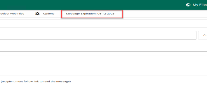 In v8.3.0.2 and later, and expiration message appears in the Send and Reply portals: