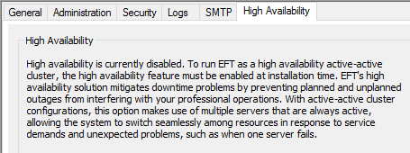If EFT is installed as an active-active or active-passive cluster, the fields below will be displayed.