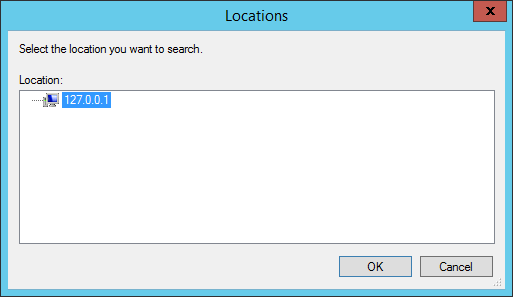 Click Locations to specify a network address to search. The Locations dialog box appears with available locations displayed.