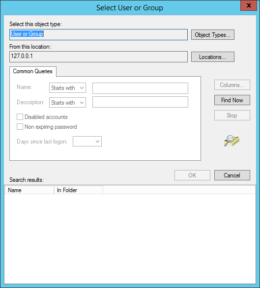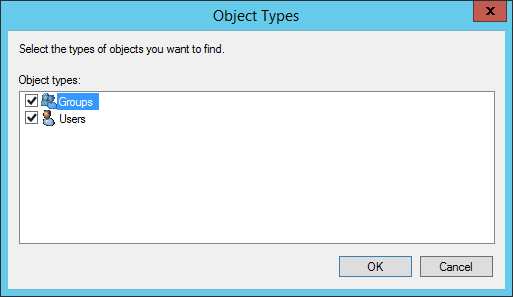 To specify the type of object to search for (User or Group), click Object Types.