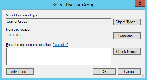 If you choose Windows Authentication, click Browse to specify the User or group. The Select User or Group dialog box appears.