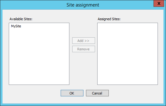If you specified that the account is a Site administrator, Template Settings administrator, Change Password administrator, or User administrator, the assignment dialog box appears.