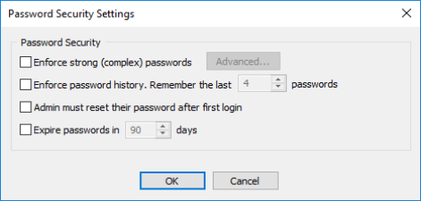 Click an EFT-managed administrator account, then click Password Policy. The Password Security Settings dialog box appears.