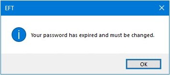 If Expire Passwords is enabled and a user logs in with an administrator account with a temporary password, EFT prompts the user to supply a new password. Each day it also checks whether passwords are <n> days from expiration, and those passwords are flagged for reminders, if reminders are enabled. All reminder email messages are sent immediately after flagging the accounts to be reminded.