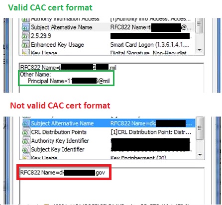 When CAC is enabled on an LDAP Site, clients are required to provide a certificate when connecting. Once the user’s certificate is validated, EFT uses the Principal Name (UPN) or RFC822 Name taken from the Subject Alternative Name (SAN) field of the Signature Certificate to search for the user in LDAP and allow or deny access based on the information found. The certificate provisioned via the web browser must have an Electronic Data Interchange Personal Identifier (EDI/PI). If the EDI/PI is not found or otherwise cannot be validated, the connection is denied. If the EDI/PI is found, EFT maps the corresponding fields in LDAP using the appropriate LDAP query string. If the user is found in LDAP, if a certificate is assigned to that user, and if the certificate exactly matches the one provided by the client, the user is allowed access.